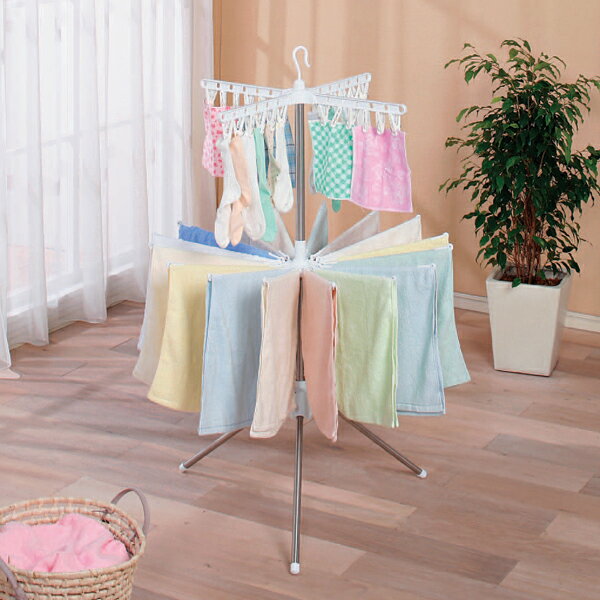 ステンレス室内物干しパラソル3段CLS-170PH【アイリスオーヤマ】価格: 2,480円レビュー評価: 0.0 レビュー数:0 丈夫でサビにくいステンレスパイプ使用の室内物干しです。使用をしないときはコンパクトに折りたたんで収納できます。上部のピンチ部分は取り外しが出来るので、場所を変えて干すこともできます。また、ピンチハンガーの穴にハンガーを通して、シャツなどの衣類を干すことができます。●サイズ(約)【使用時】:幅77×奥行き77×高さ171cm【収納時】:幅16×奥行き16×高さ203cm●耐荷重:ピンチハンガー部約2kg、タオルハンガー部約4kg、全体約10kg●人数(目安):1?6人分●干す量:靴下12組・フェイスタオル32枚●主要材質:ステンレス巻きスチールパイプ、ポリプロピレン窓枠物干しMJ-190【高さ1 |